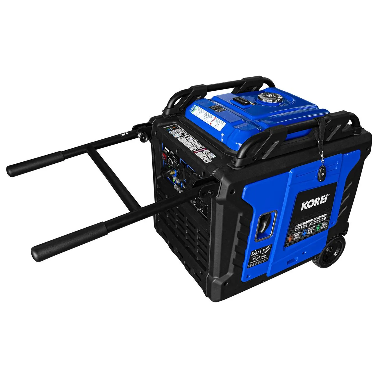 NUEVO Generador Profesional Portátil Inverter TRI FUEL silencioso con arranque de 3 tipos de combustible: Gasolina, Gas LP y Gas Natural y motor de 4 tiempos de buena calidad y durabilidad marca KOREI.
