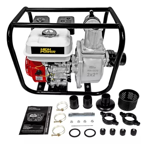 Motobomba autocebante con diámetros de succión y descarga de 2”, estructura de aluminio y potencia de 6.5 HP que permiten lograr un flujo máximo de operación de 300 Lts / Min gracias a su motor de 4 Tiempos